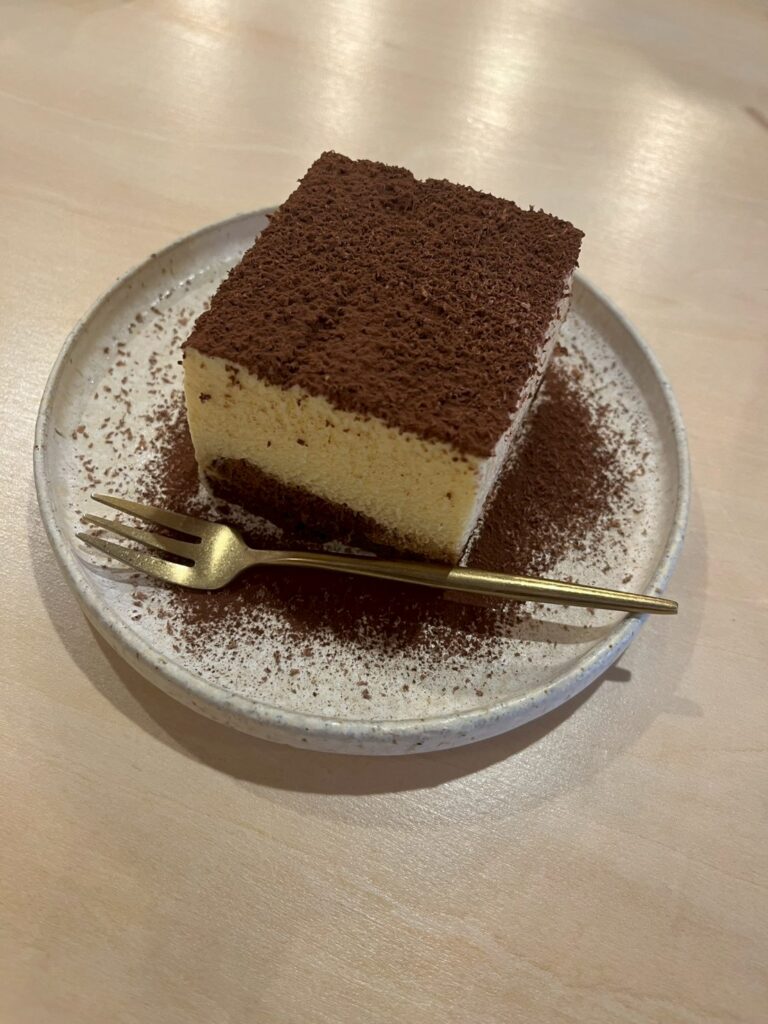 今回いただいたスイーツは、四角いフォルムが美しいティラミス。 一口食べて、その完成度の高さに驚きました。