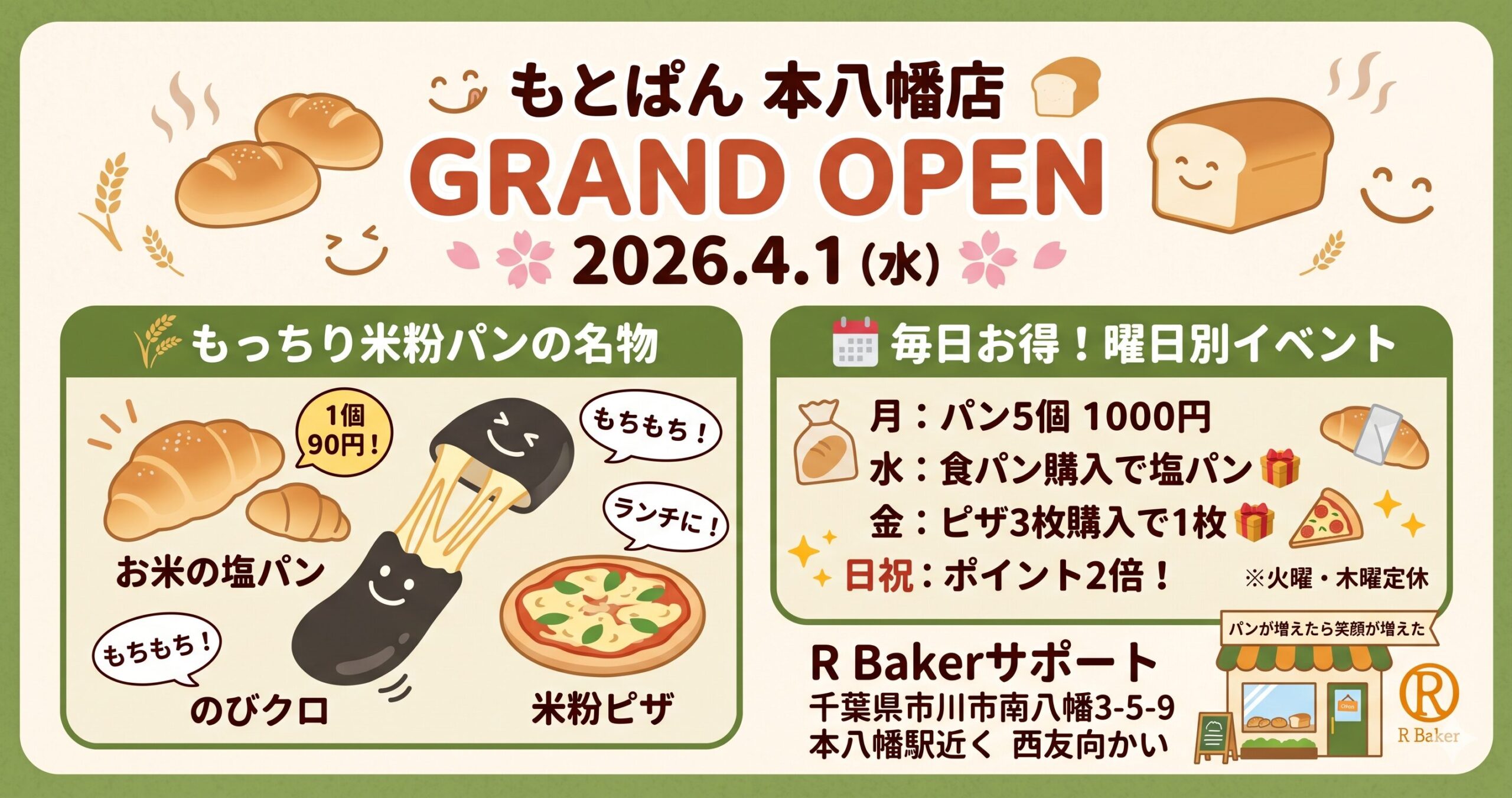🍞 【千葉・本八幡】4/1オープン!R Bakerがずっと通いたい米粉パンのお店「もとぱん」