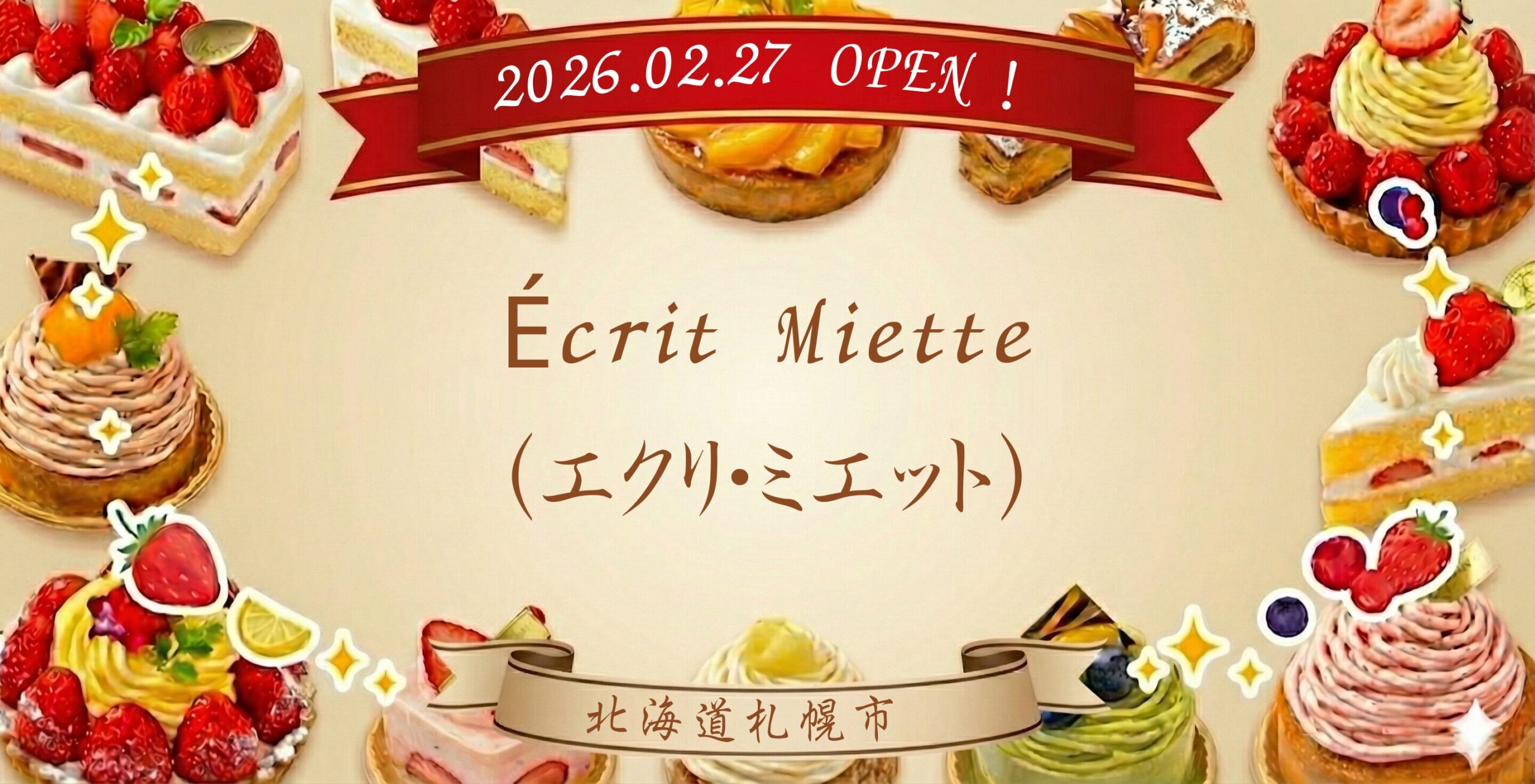 🍰 【札幌市東区】明日2/27オープン!週2〜3日営業の特別なケーキ屋「Écrit Miette(エクリ・ミエット)」