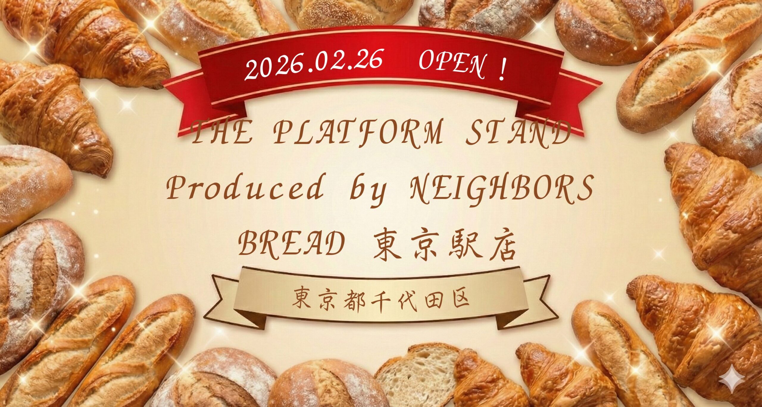 こちらのお店は【完全キャッシュレス決済のみ】2026年2月26日、東京駅の東海道新幹線ホーム上(14号車付近)にテイクアウト専門のパン屋「THE PLATFORM STAND Produced by NEIGHBORS BREAD 東京駅店」がオープン!大人気店スタンダードベイカーズがプロデュースする絶品パンが入場直前に購入できます。完全キャッシュレス決済の注意点など、店舗の場所や営業時間について詳しくご紹介します。となっており、現金はご利用できません。