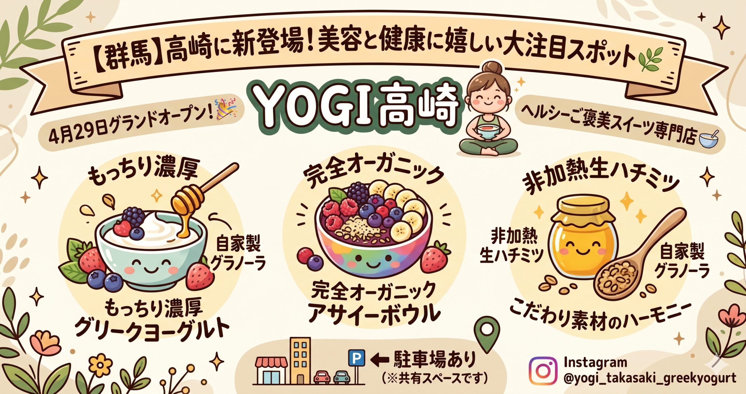 🥣 【群馬・高崎】4/29オープン!からだに優しいご褒美スイーツ、グリークヨーグルト&アサイー専門店「YOGI 高崎」