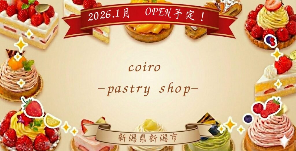 🧁 超速報!2026年1月オープン予定! 新潟市中央区・春日町に彩り豊かな新店「coiro -pastry shop-」が誕生