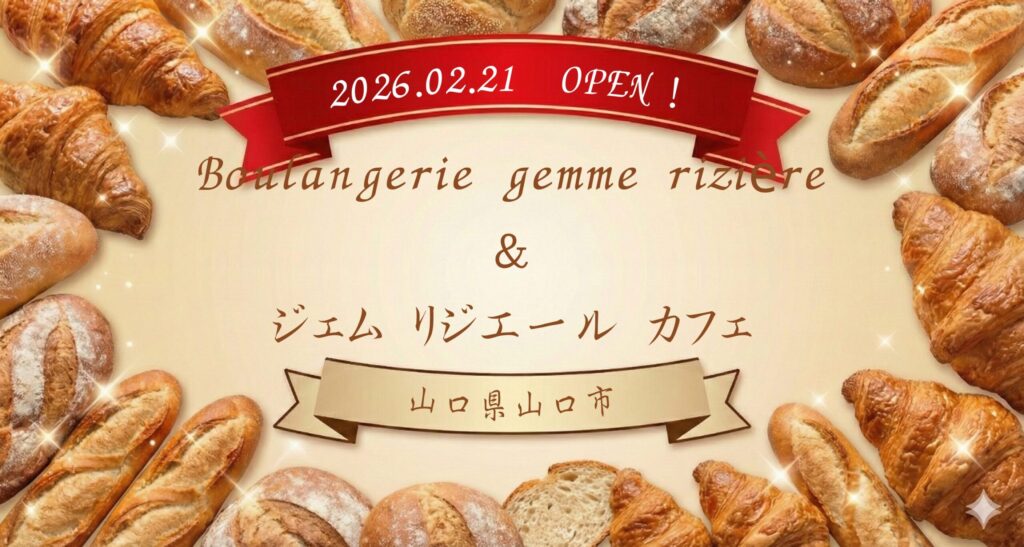 山口県山口市宮野上に、毎日のランチやティータイムを最高に格上げしてくれる、とってもお洒落で美味しい注目の新店舗が誕生しました! お店の名前は 「Boulangerie gemme rizière(ブーランジェリー ジェム リジエール)」 先月、2026年2月21日より「gemm... -