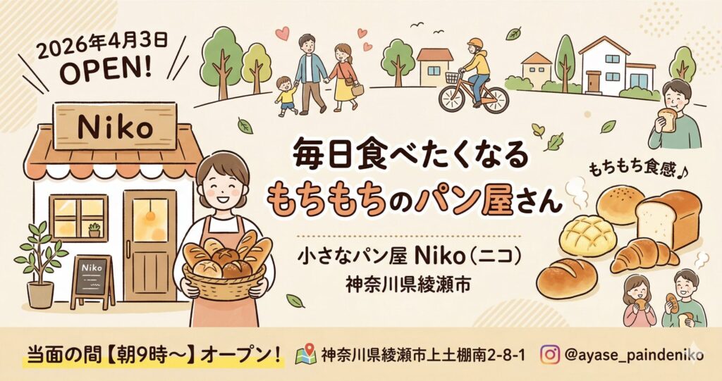 🥐 【神奈川・綾瀬市】4/3オープン!毎日食べたくなる“もちもちパン”の小さな隠れ家「Niko」
