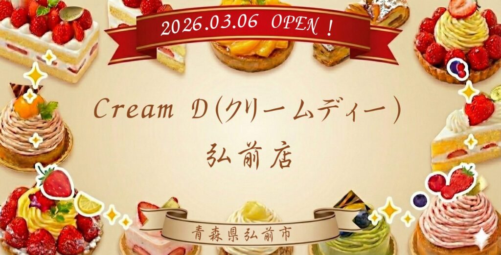 青森県弘前市にお住まいの皆様、そして最先端のスイーツに目がない皆様に、絶対に見逃せない大注目のオープン情報をお届けします! 関東エリアで大ブームを巻き起こしている生ドーナツ専門店 「Cream D(クリームディー)」 が、カフェスタイルでついに青...
